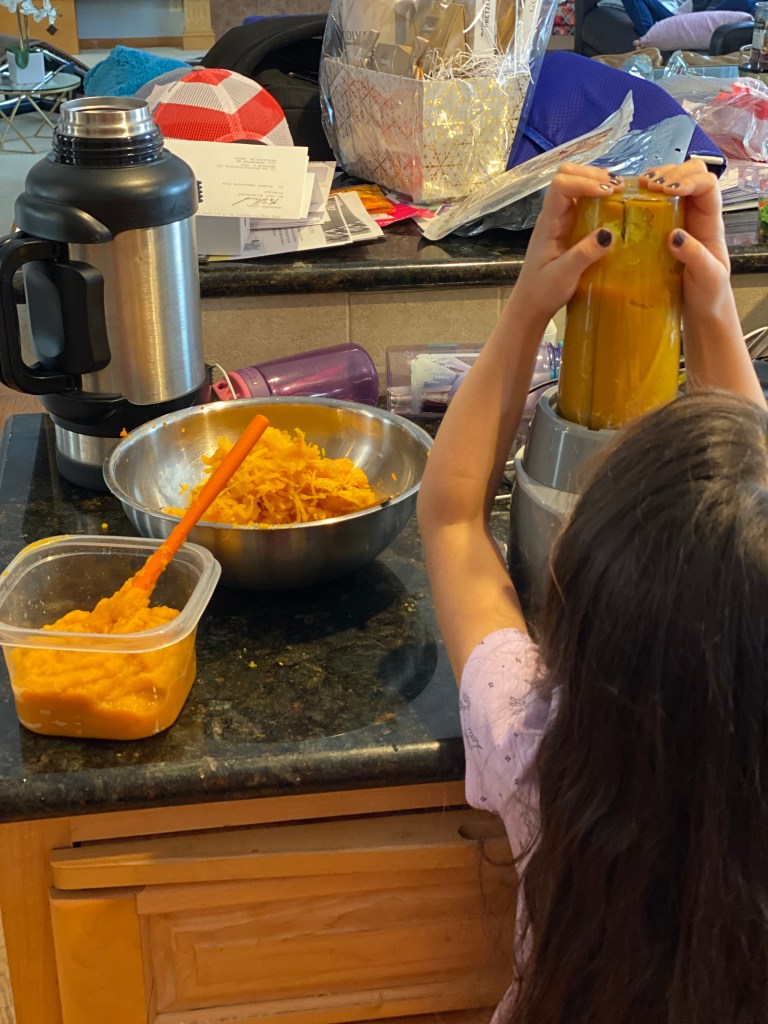 2. In the same saucepan add 1 T butter and add onion, shredded carrots, parsley flakes, basil and celery. Saute until tender.