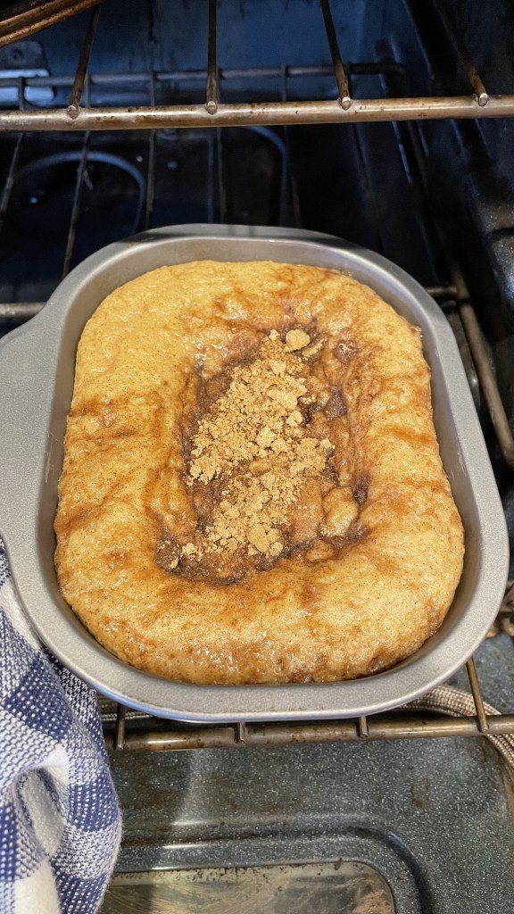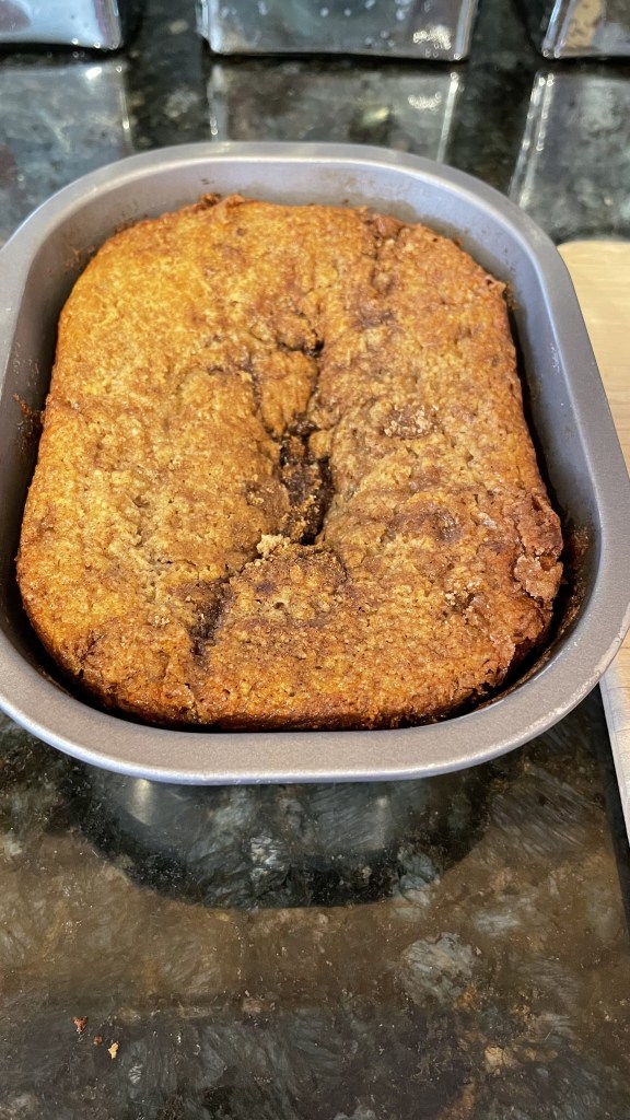 Combine dry ingredients for bread. Add in wet ingredients. Mix well. Spray bread pay with non stick spray. Pour 1/2 batter into bread pan. Add in half of the swirl ingredients. Add remaining batter, topping with balance of swirl ingredients. Swirl (no mix) from top. Note that batter will rise. Bake at 325°F for 55-65 mins (times vary with ovens). Use fork, or toothpick to confirm batter is baked.